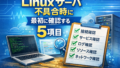 ディスク使用率を確認すると、ログ肥大や一時ファイルで埋まっていることが多い。