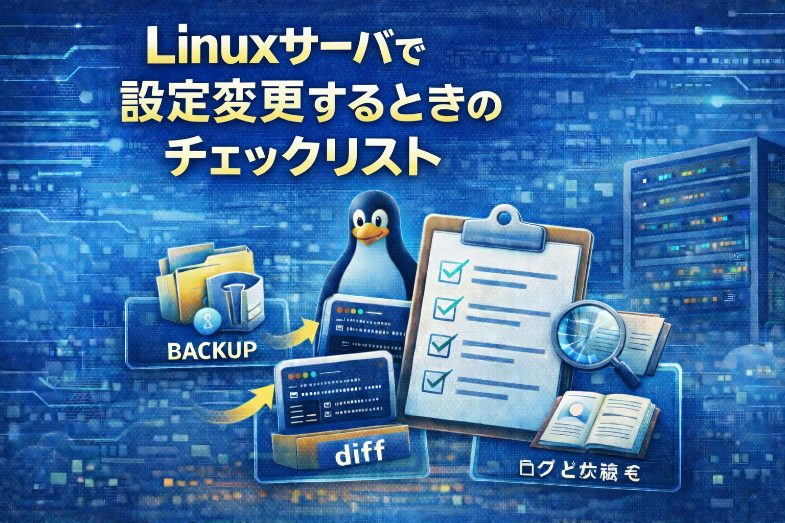 今回は、今までブログに書いたことを踏まえてLinux サーバで設定変更するときに、