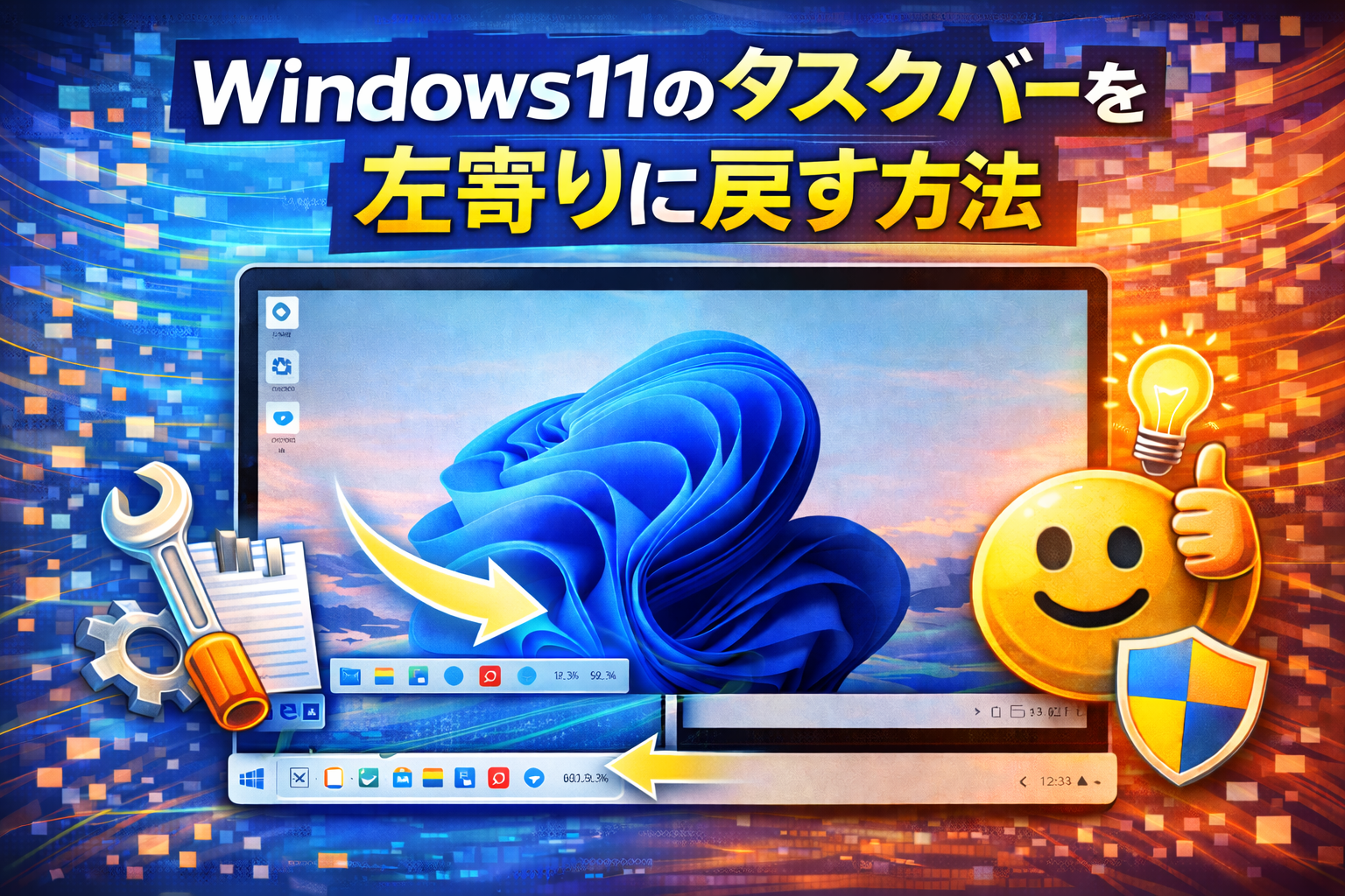 タスクバーを左寄りに戻す方法(GUIで完結)
